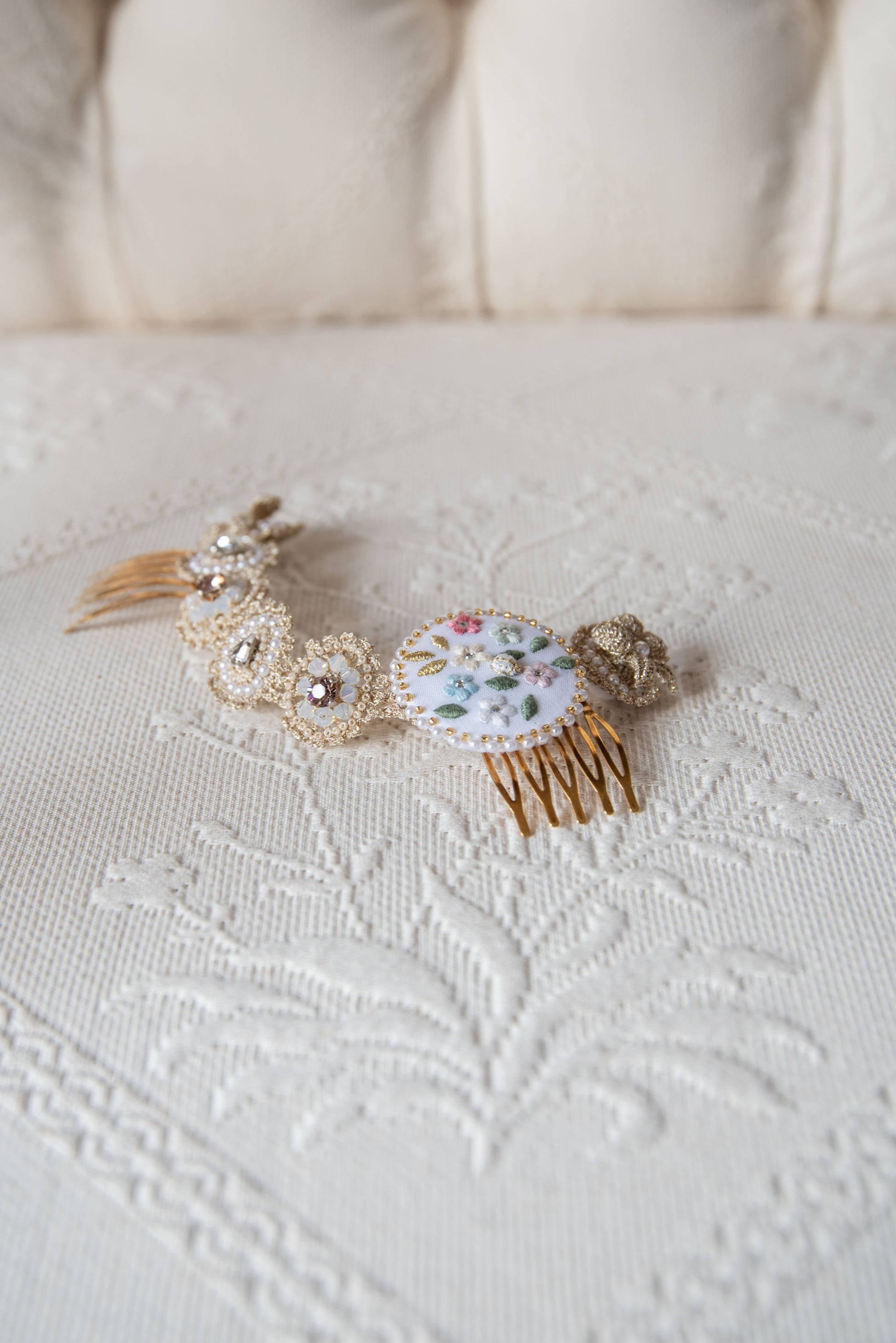 Angelica - accessorio per capelli, ricamato a mano